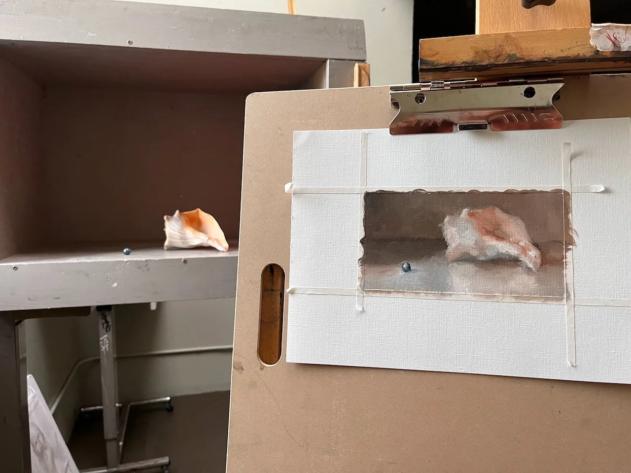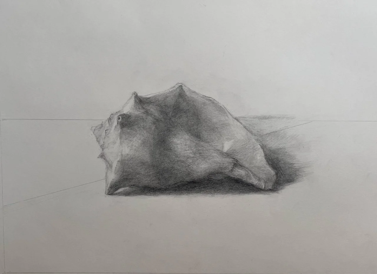 In that quiet work, I felt tethered: to the shell, to the shaded world beyond the window, and to something vaster that painting alone could reach.